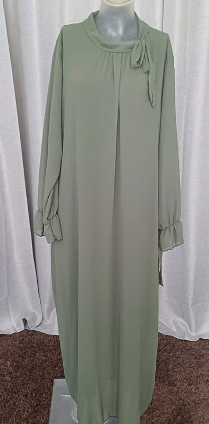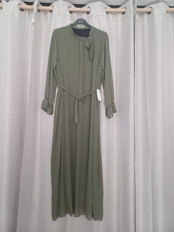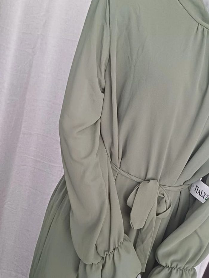Robe chic et élégante en voilage kaki - photo numéro 2