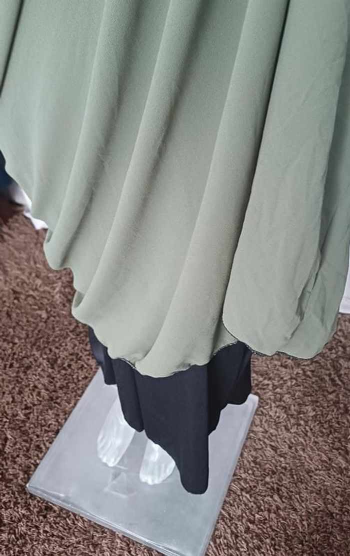 Robe chic et élégante en voilage kaki - photo numéro 3