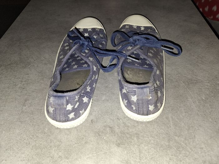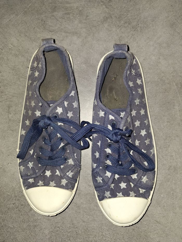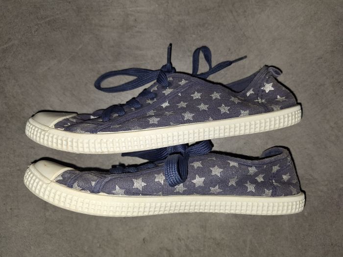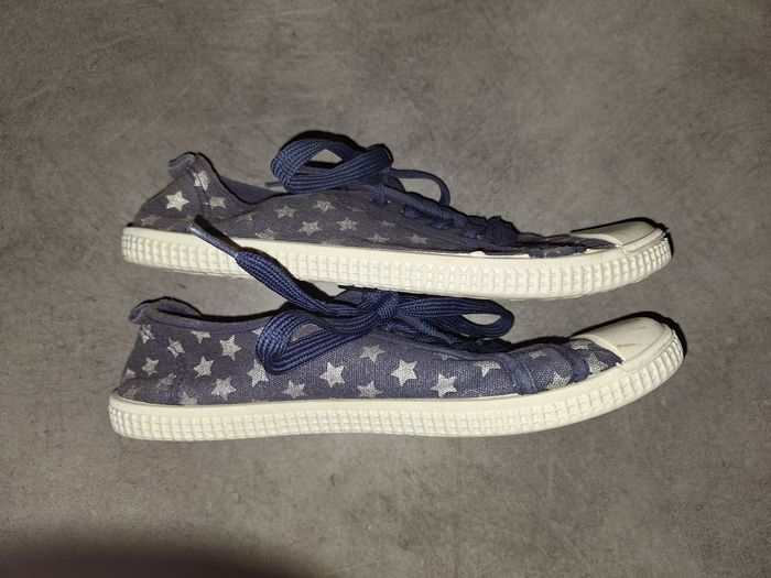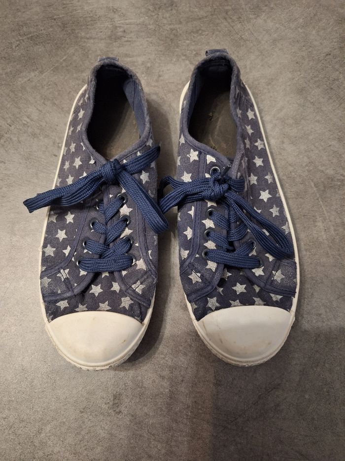 Baskets légères en toile bleu marine avec étoiles argentées, pointure 38, portées mais en bon état