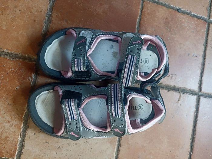 Sandales gris et rose jamais porté mais un peu taché sur la semelle