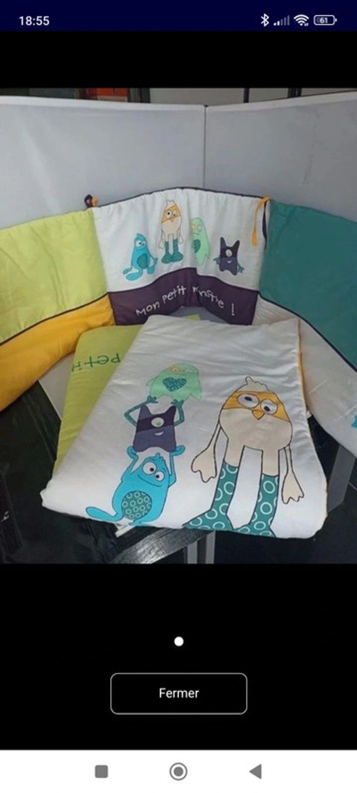 Ensemble monstre thermobaby Tour de lit neuf avec étiquette acheté 8€ chez Noz Je donne avec un édredon assorti car tâche même si produit neuf également