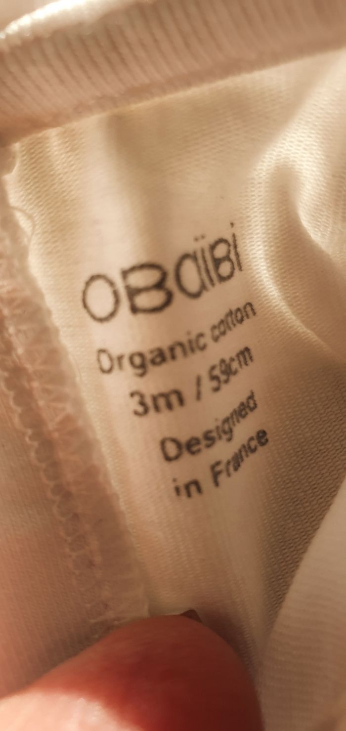 Tee-shirt manches longues bébé 🚼 fille Taille 3 mois 59 cm Marque obaibi Couleur blanc Maison non fumeur Linge lavé avec lessive bébé