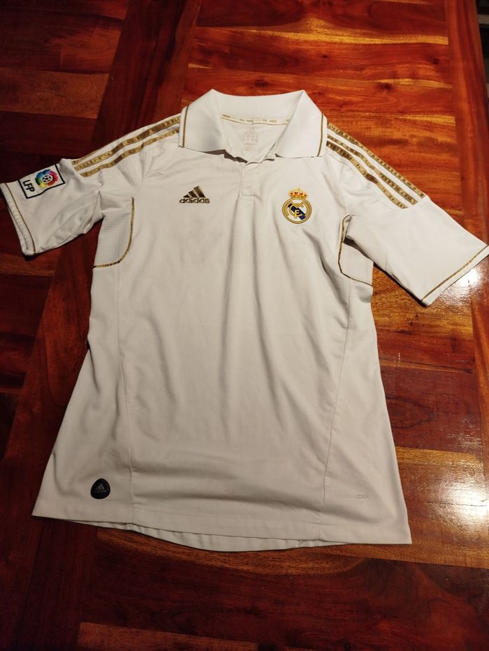 Bonjour Vends maillot de foot Real Madrid en très bon état.( Le col légèrement taché et couture enlevée sur quelques points CV photos) N hésitez pas à consulter toutes mes annonces, lot possible 😉 Bonne journée