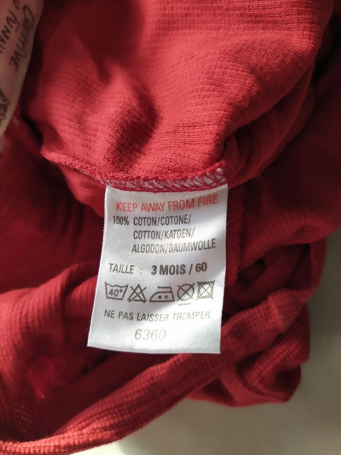 Combishort À capuche Rouge Bouton pression à l'entre jambes Kids minis 3 mois Bon état