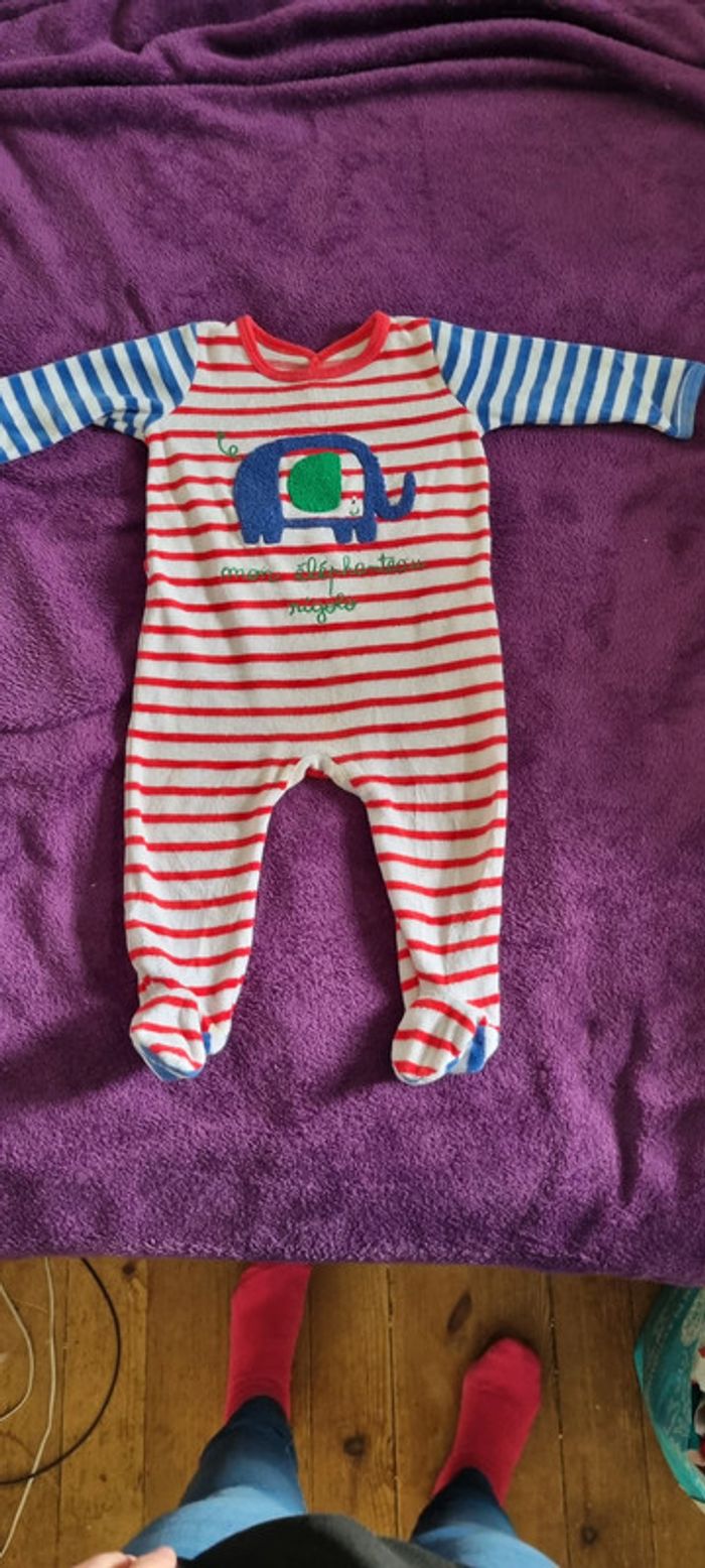 Beau pyjama rayé rouge et blanc avec elephant. En très bon état. 12 mois. #anaisfmrbebe12mois #anaisfmrbebegarcon #anaisfmrbebefille
