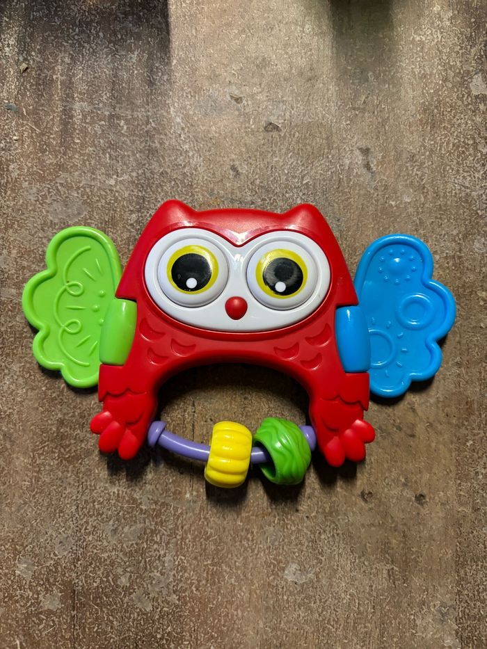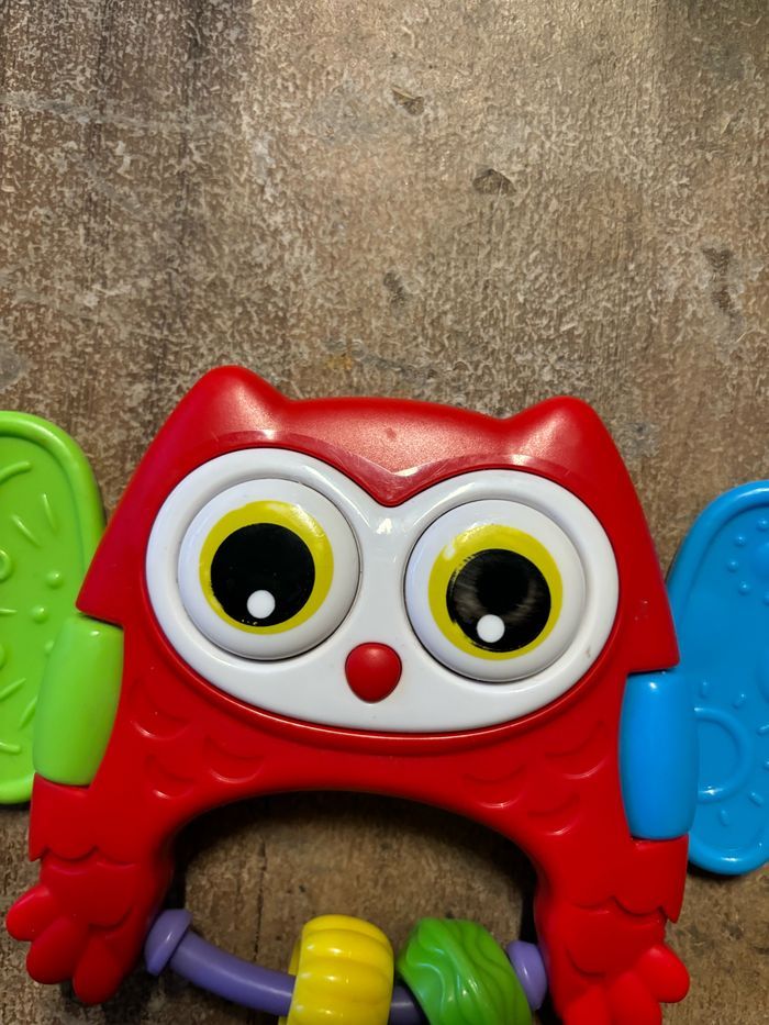 Hiboux jouet d’éveil la marque je ne sais pas, œil un peu effacer vite fais voir photos.