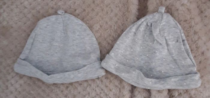 2 bonnets naissance mixte étiquette couper il me semble que c'est kiabi
