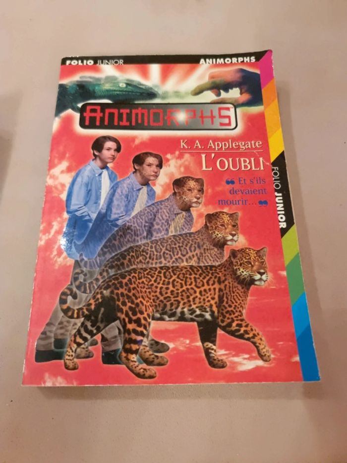 L'oubli Tome 11 animorphs de K.A. Applegate Collection Folio junior Collection vintage. Dès 1996. Très difficiles à trouver aujourd'hui Animorphs est une série de romans de science-fiction jeur 5 écrite par Katherine Alice Applegate, publiée entre 1996 et L'histoire suit un groupe de cinq adolescents (12 à 14 ans) a d'une technologie Andalite (extraterrestre), la morphose, qui leur permet de se transformer en animaux. I|s entendent ainsi lutter contre l'invasion des Yirks sur Terre, une race extraterrestre de limaces parasites en perpétuelle recherche de nouveaux hôtes, de corps à infiltrer, à contrôler et à réduire en esclavage En très bon état général. Voir photos #angel_livre_enfant
