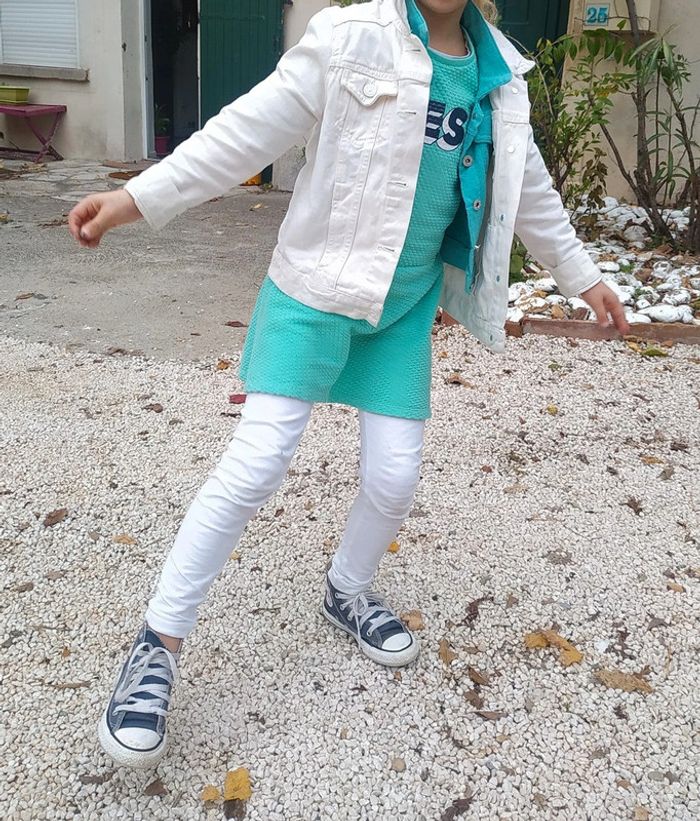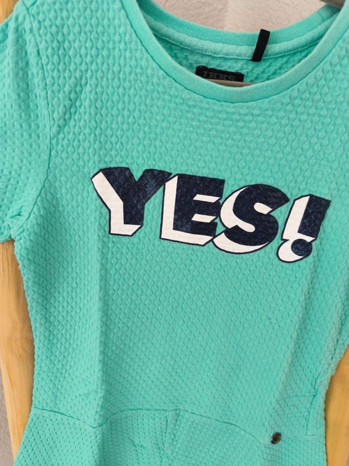 #loulaliefille7ans dans la recherche pour voir mon 7 ans fille Robe IKKS 6 / 8 ans vert menthe écriture marine blanc .Coton épais . Kiabi seconde main et beebs possible
