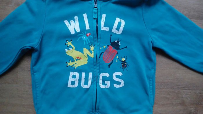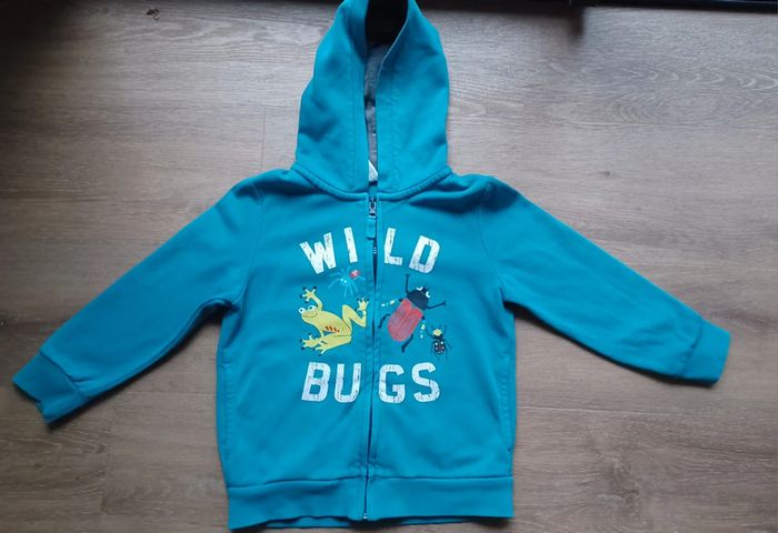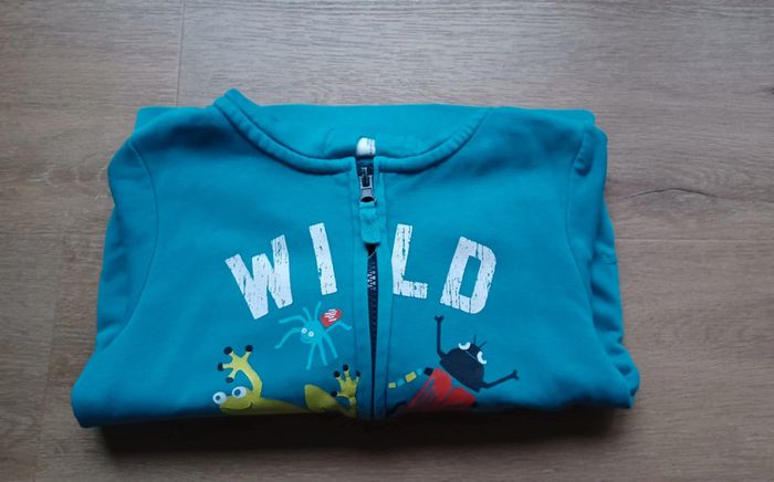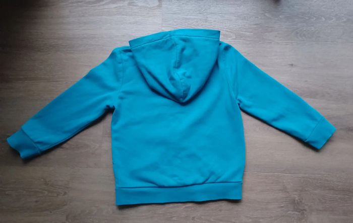 Gillet zippée Zip qui fonctionne parfaitement Très joli couleur bleu turquoise Un petit accro côté poché qui ne se voit pas porté. Je l'ait cousu Possibilité de faire un lot, d'autres vêtements disponibles