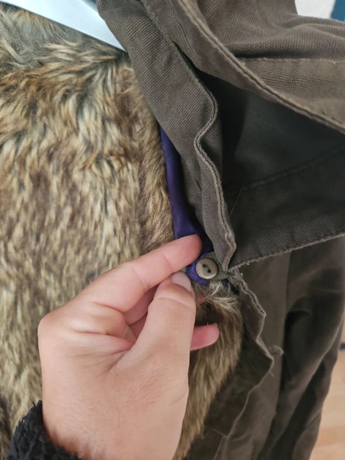 🔥🔥-50% à partir de 5articles 🔥🔥 Manteau 2en 1 DKNY taille 12 ans. Couleur kaki , la moumoute peut se retirer et se mettre en Doudoune sans manche, couleur kaki ⚠️manque à bouton sur une poche ⚠️ bon etat 15€ (dy6) #dydy1510taille12ansf