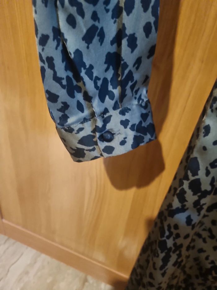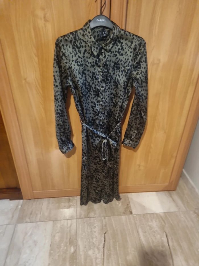 Robe longue kaki forme évasée - Col chemise, manches longues boutonnées - Imprimé léopard - Fermeture par boutons devant Taille EUR : M
