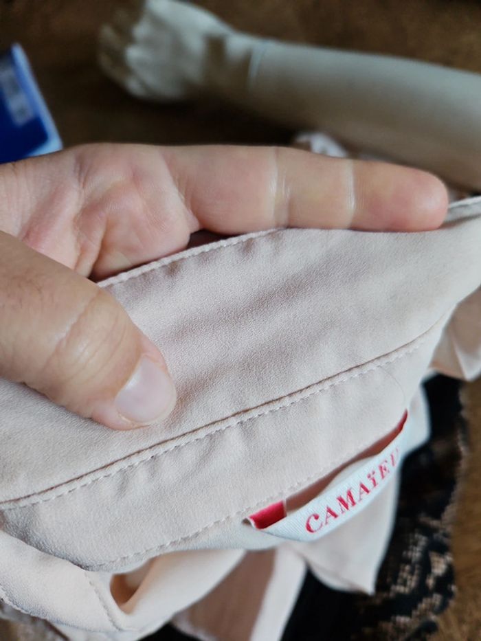 🔥🔥-50% à partir de 5articles 🔥🔥 Blouse CAMAÏEU taille 36 , couleur rose saumon ⚠️ pliure du col un peu tâcher mais ne se voit quasi pas ⚠️ 2,50€ (sc18) #dydy1510taille36
