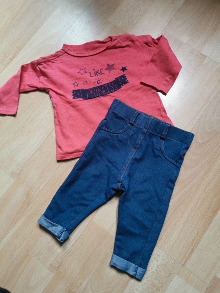 Ensemble pour fille taille 6 mois : - t-shirt rose Vertbaudet -jean bleu Kiabi 5€ (pw4) #dydy1510taille6moisf