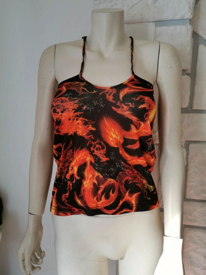 Débardeur motif dragon 🐲 et flamme il n'y a plus d'étiquette de taille mais correspond à du 36 bon état 1€ (E6) #dydy1510taille36