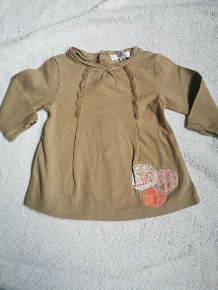 T-shirt manches longues Kitchoun taille 3 mois, couleur kaki bon état 1 € (ac1) #dydy1510taille3moisf