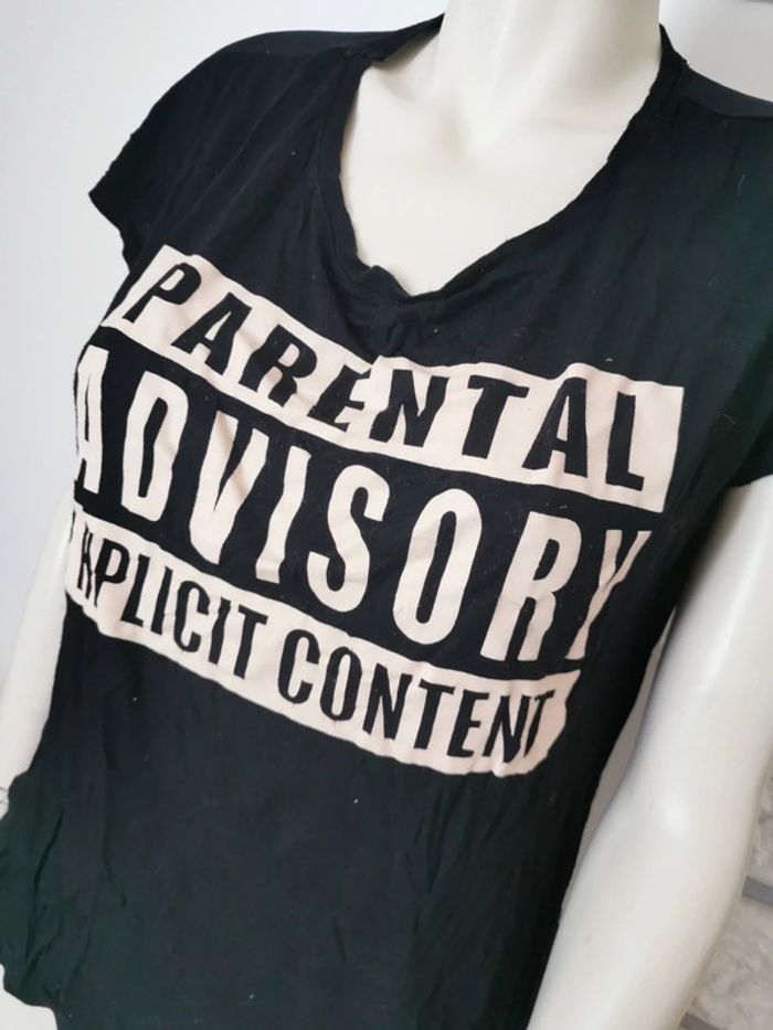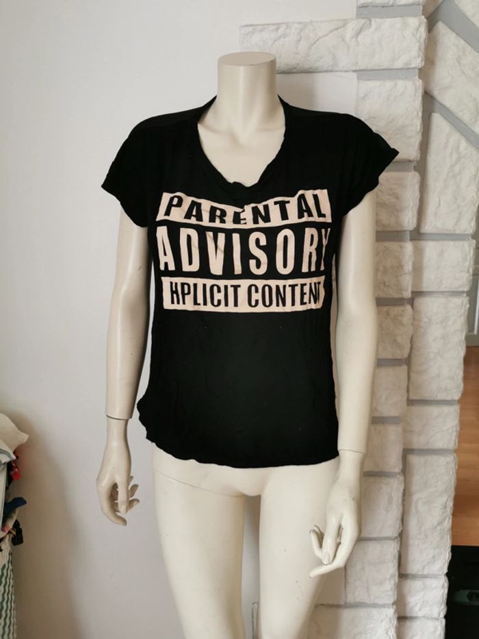 T-shirt imprimé taille 36 couleur noir et beige, transparent sur le dos ! bon état 2 € (F) #dydy1510taille36