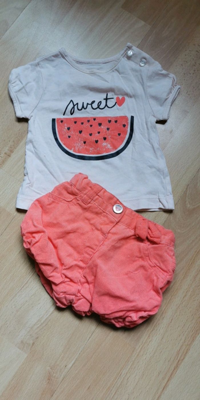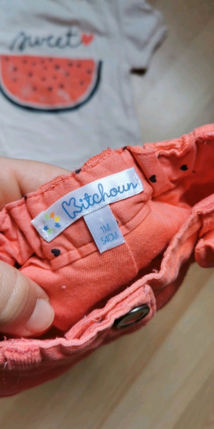 ensemble Kitchoun taille 1 mois : T-shirt + short, couleur orange et rose, très bon état 3 € (SS) #dydy1510taille1moisf