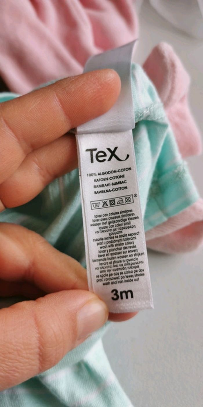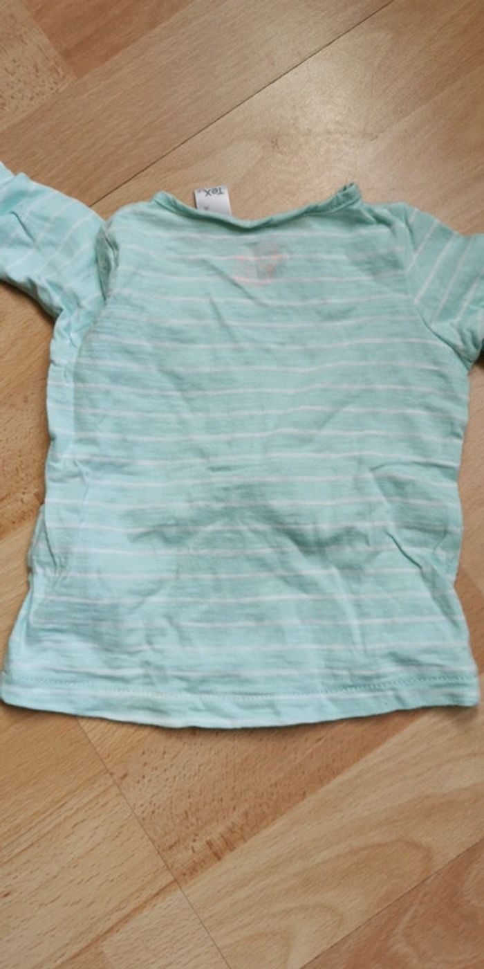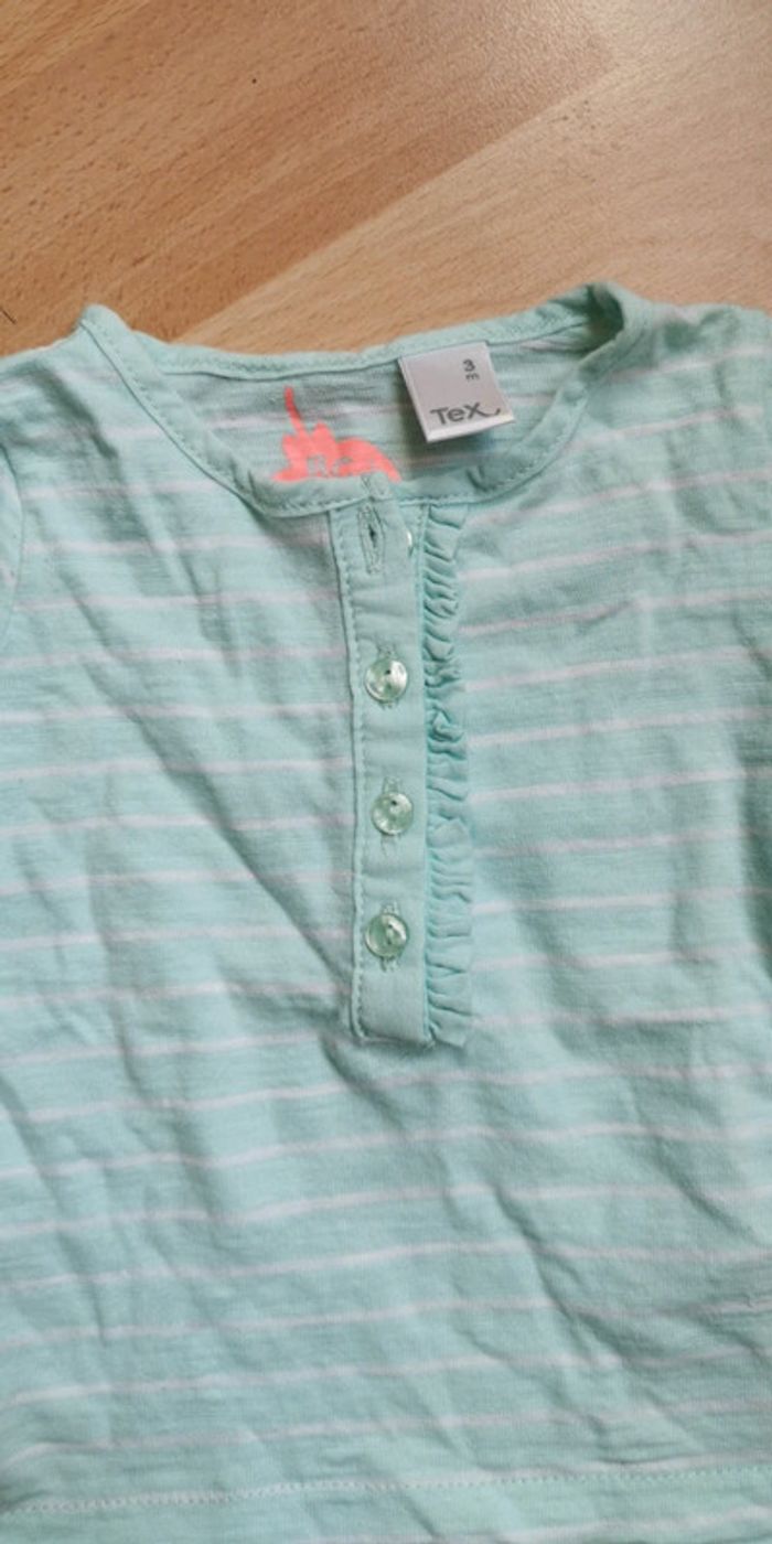 T-shirt manches longues TEX taille 3 mois, couleur vert pastel et blanc bon état 1,50 € (SS) #dydy1510taille3moisf