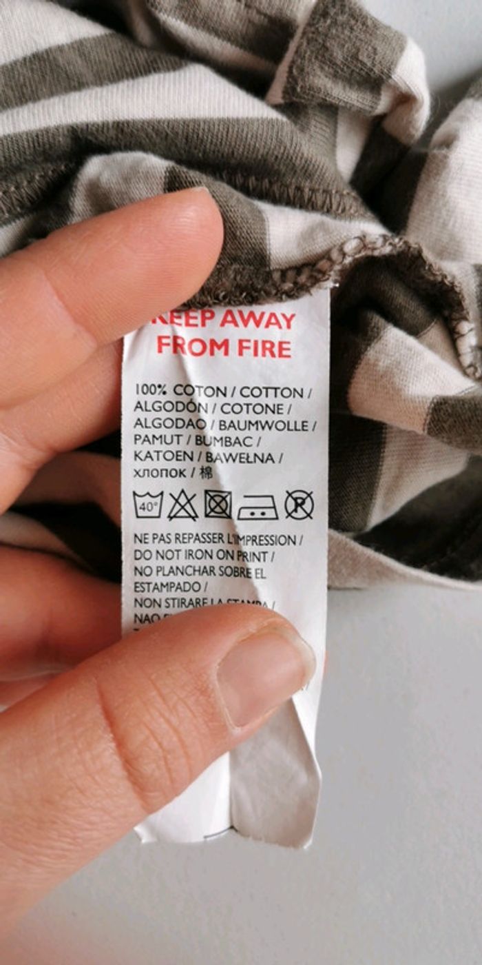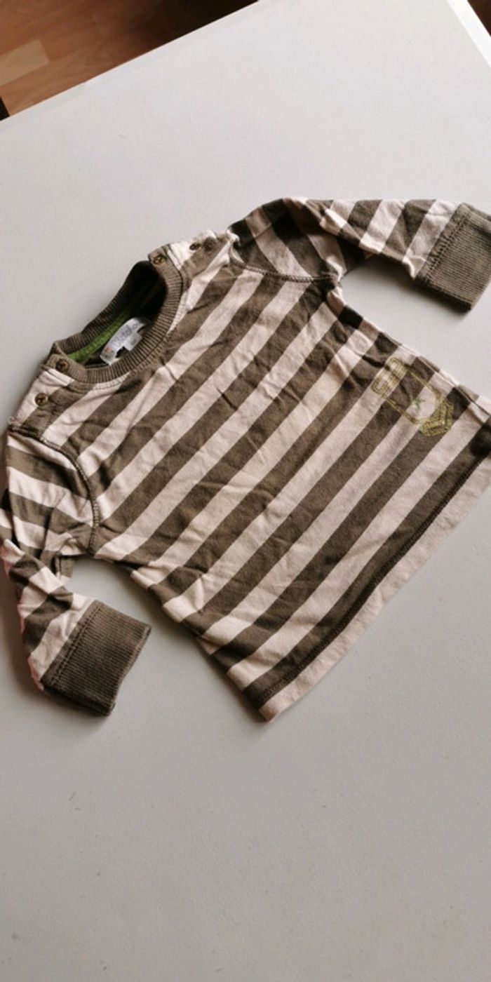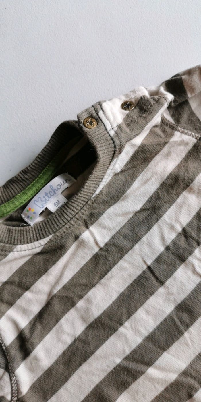 T-shirt manches longues Kitchoun taille 6 mois couleur beige et kaki bon état 1 € (KC3) #dydy1510taille6moisg