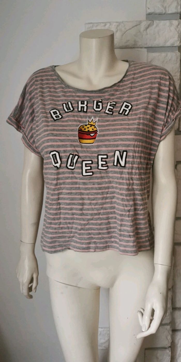 🔥🔥-50% à partir de 5articles 🔥🔥 T-shirt CACHE-CACHE taille 38, couleur gris et rose, motif hamburger 🍔 bon état 2 € (SC1. k)) #dydy1510taille38