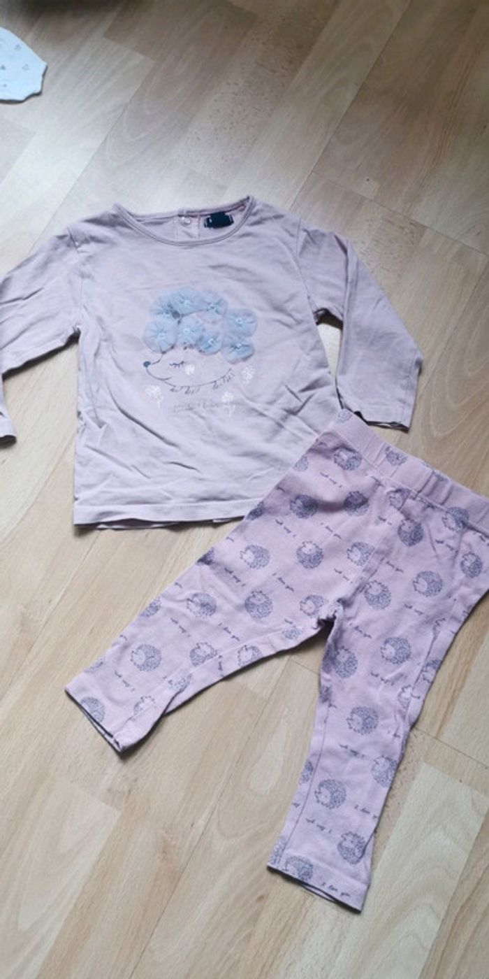 Ensemble pour fille Kiabi 12 mois, t-shirt manches longues + legging, motif hérisson 🦔 couleur violine bon état 1,50€ (sc9) #dydy1510taille12moisf
