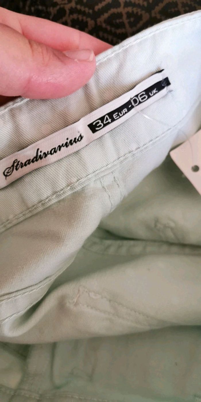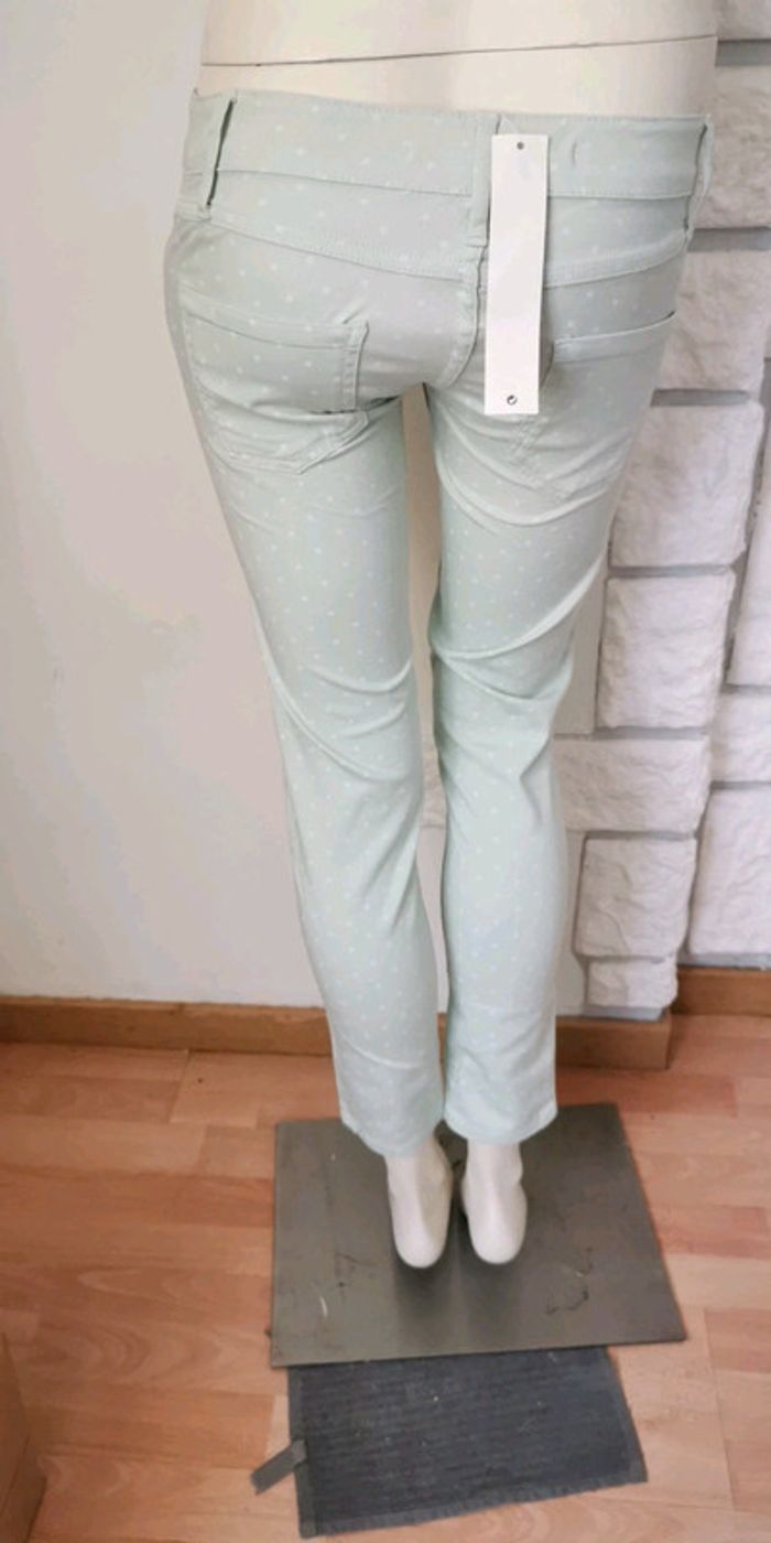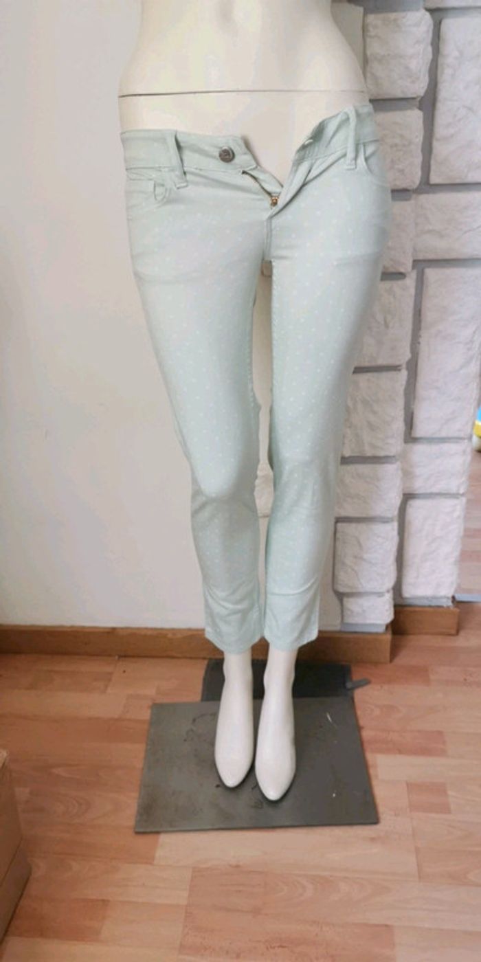 Pantalon Stradivarius taille 34 couleur vert pastel à pois blanc, neuf avec étiquette 10 € (B5) #dydy1510taille34