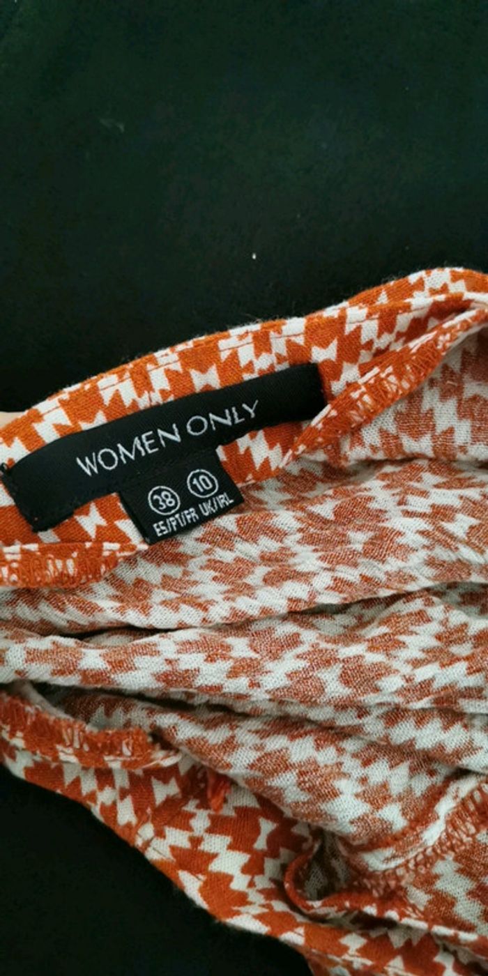 Blouse WOMEN ONLY , ⚠️ il est inscrit taille 38 mais qui taille en 34 ⚠️ couleurs rouille et blanc ! bon état 2,50€ (dy) #dydy1510taille34