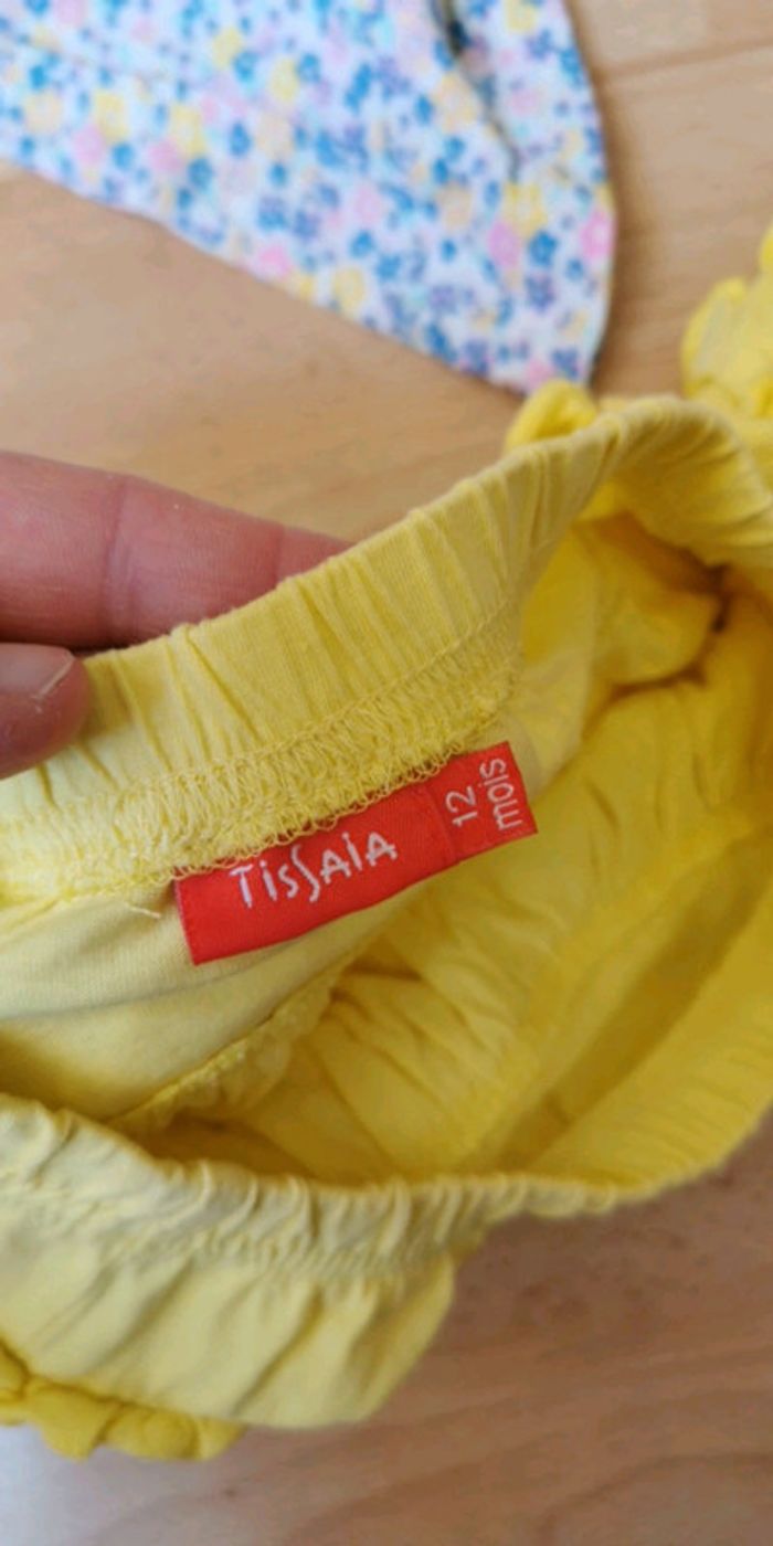 Ensemble débardeur YOUNG DIMENSION + jupe TISSAIA, taille 12 mois couleur jaune et bleu bon état 3€ (sc10) #dydy1510taille12moisf
