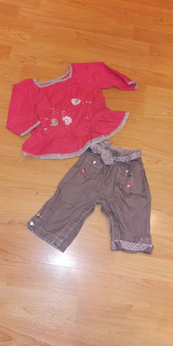 Ensemble fille blouse + pantalon Sergent Major taille 6 mois couleur rose et taupe ⚠️ manque un bouton au dos mais bon état pour le reste ⚠️ 3 € (AA) #dydy1510taille6moisf