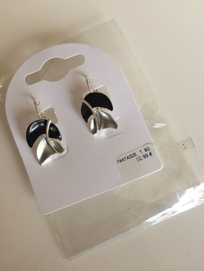 boucle d'oreille noir et argenté NEUVE 3€ (L) #dydy1510bijoux