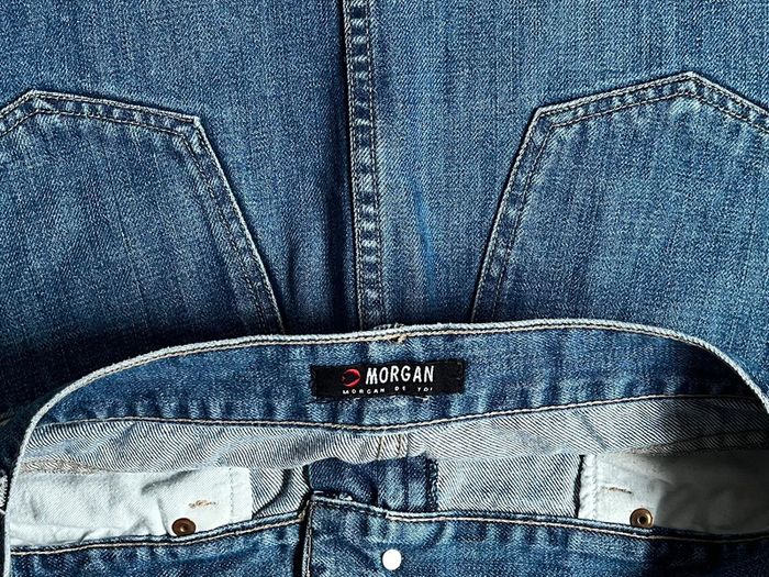 🔎 Mini jupe en jean Morgan T-36 (TBE, portée 1 fois, proche du neuf, étiquette de taille coupée, 1ère main)