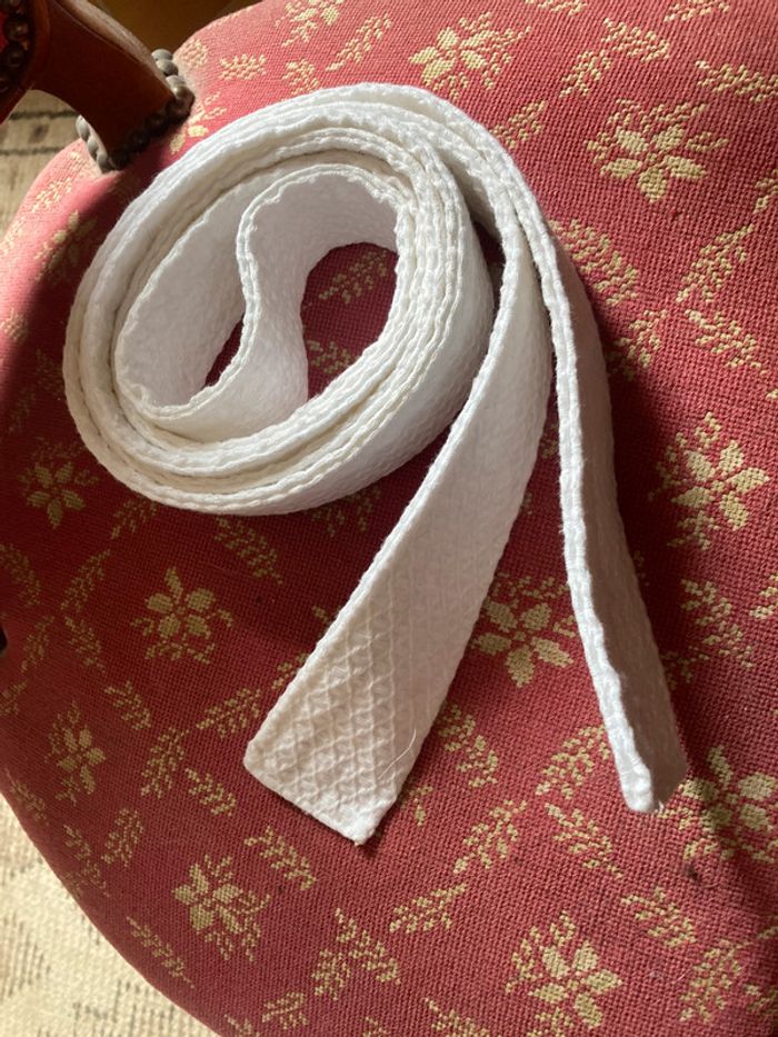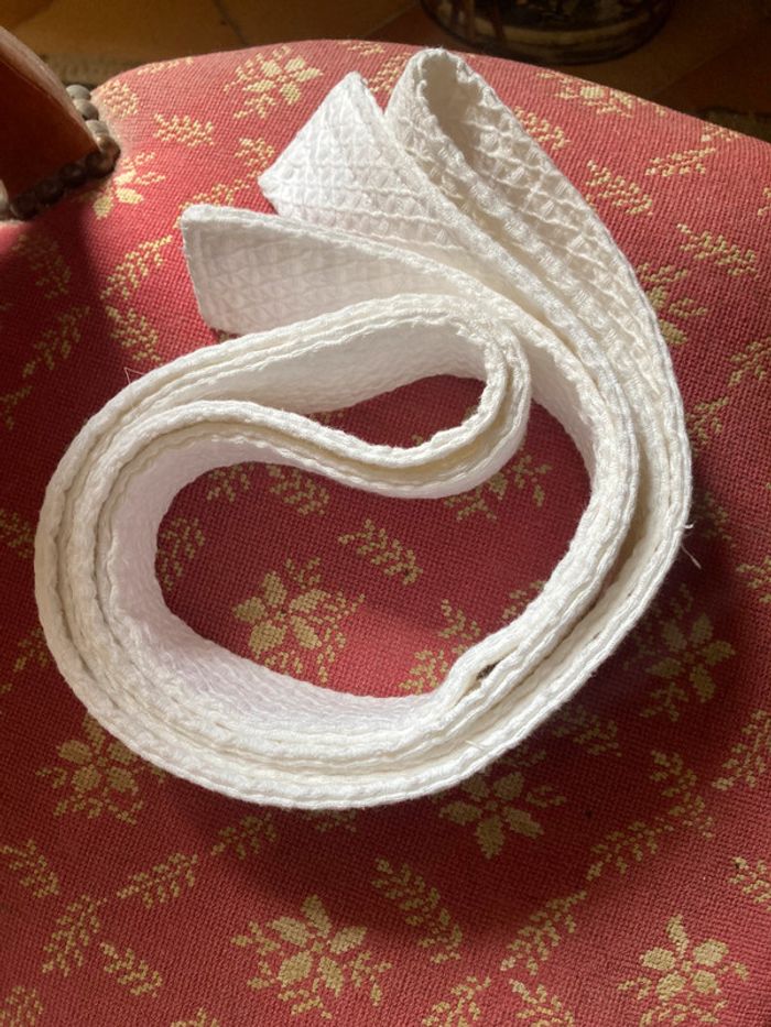 jolie ceinture blanche neuve longueur 2,18m environ permet de faire un trout double pour boucler une robe au niveau de la taille