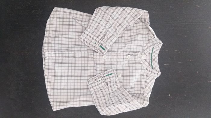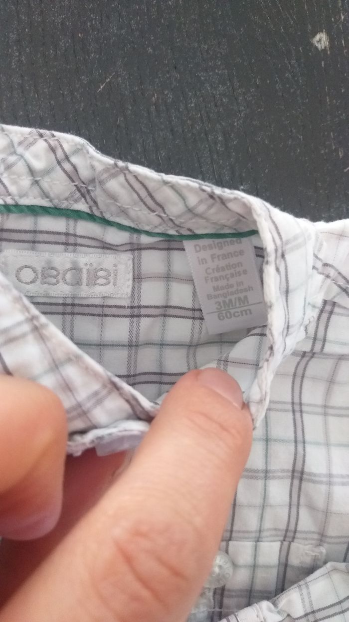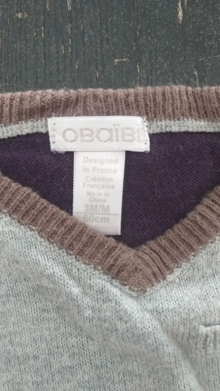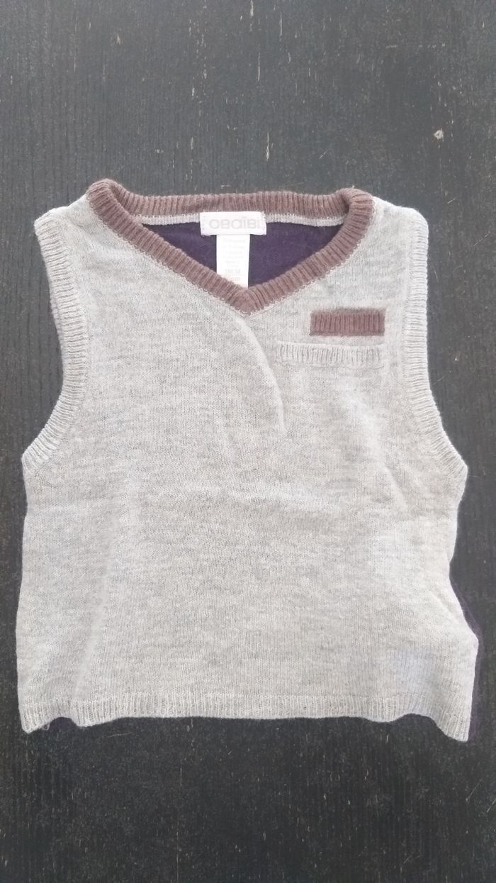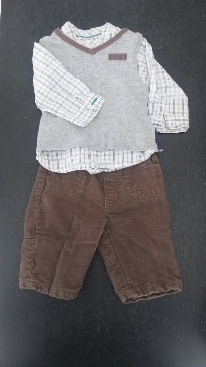 Ensemble garçon taille 3 mois en 3 pièces en très bon état de chez Obaibi. Il est composé d'un pull sans Manche, d'une chemise manches longues et d'un pantalon.
