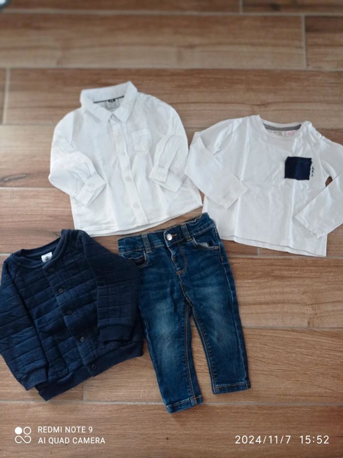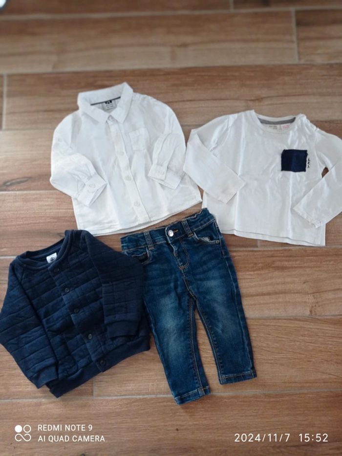 Ensemble 12 mois, jean+ chemise blanche+ tee shirt + veste molletonné marine