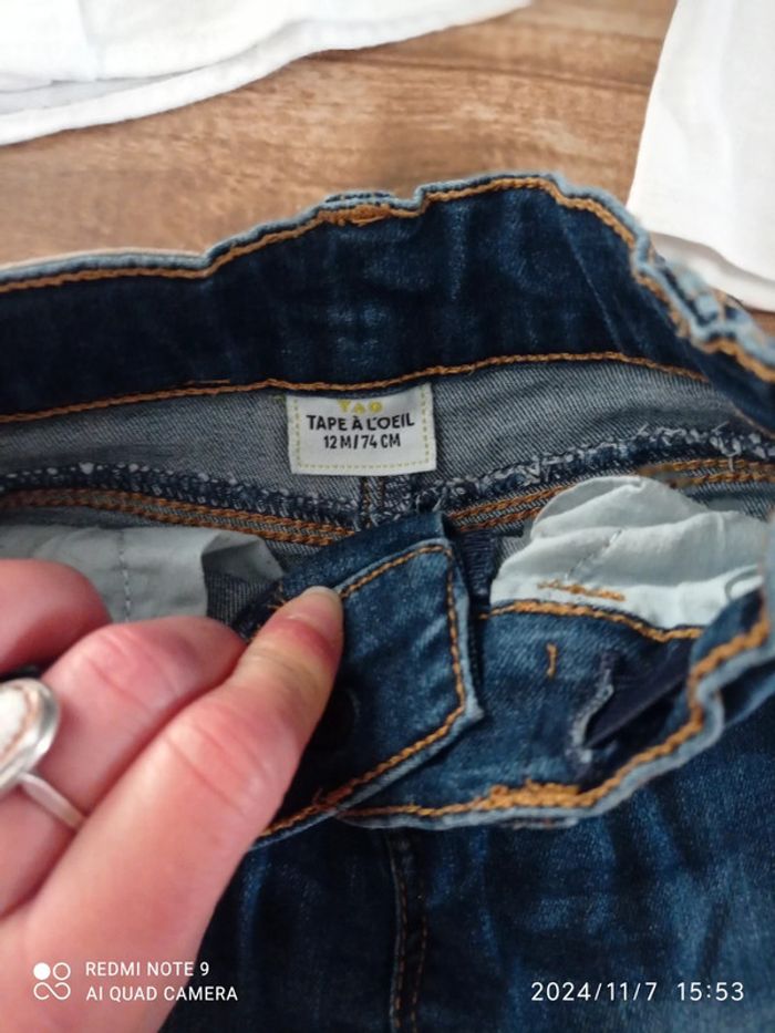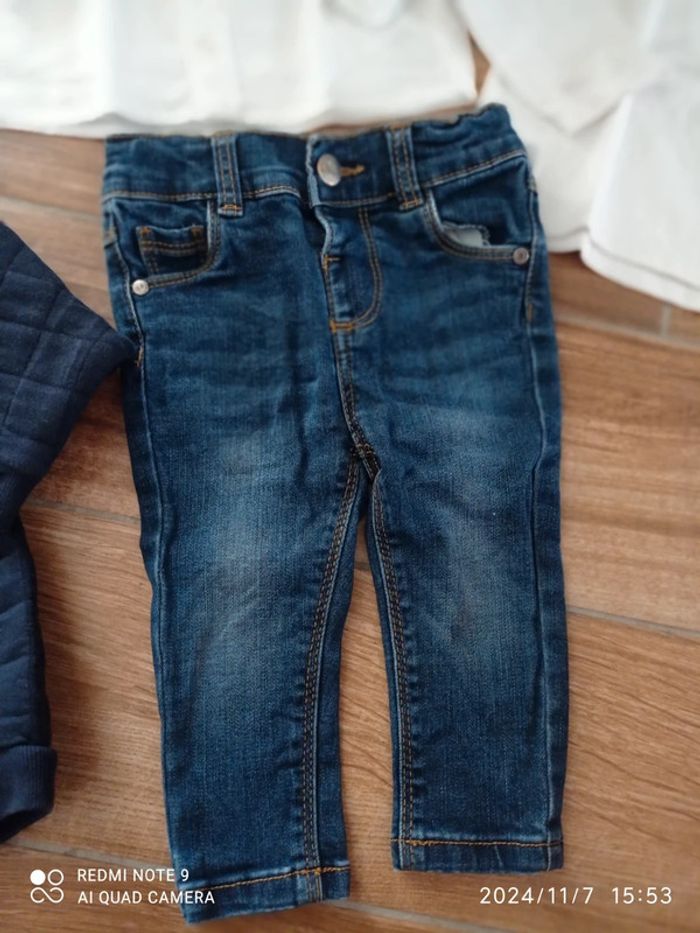 Ensemble 12 mois, jean+ chemise blanche+ tee shirt + veste molletonné marine - photo numéro 12