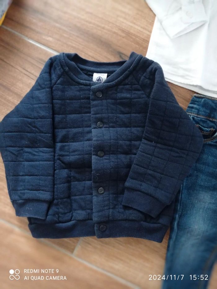 Ensemble 12 mois, jean+ chemise blanche+ tee shirt + veste molletonné marine - photo numéro 14