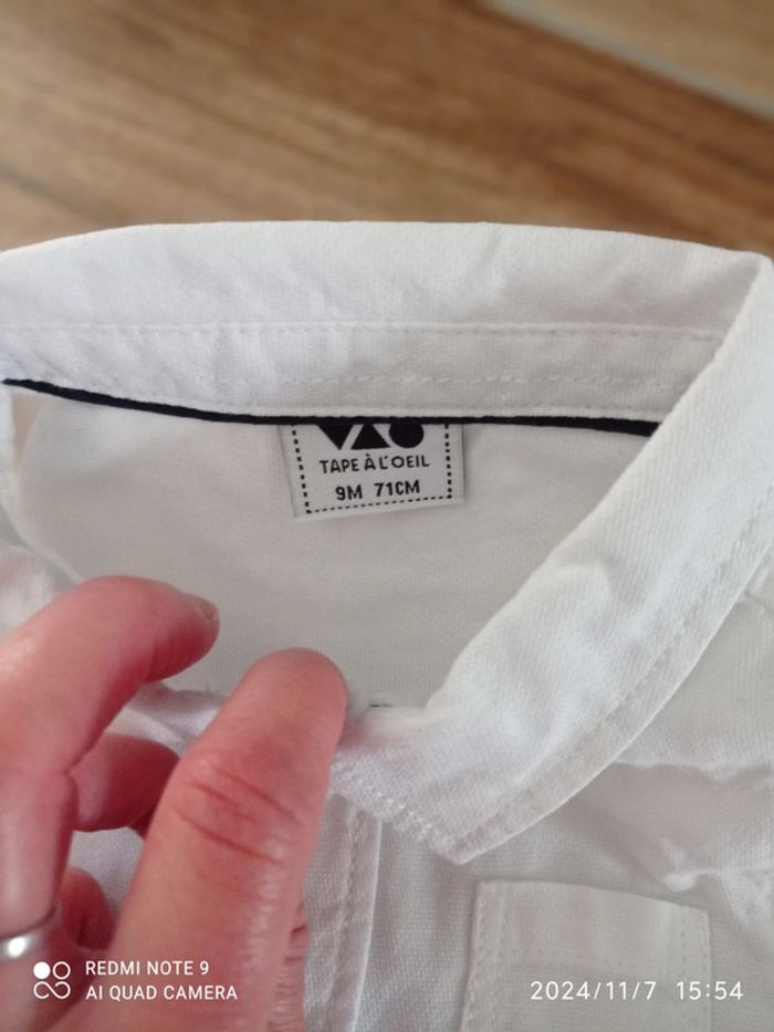 Ensemble 12 mois, jean+ chemise blanche+ tee shirt + veste molletonné marine - photo numéro 13