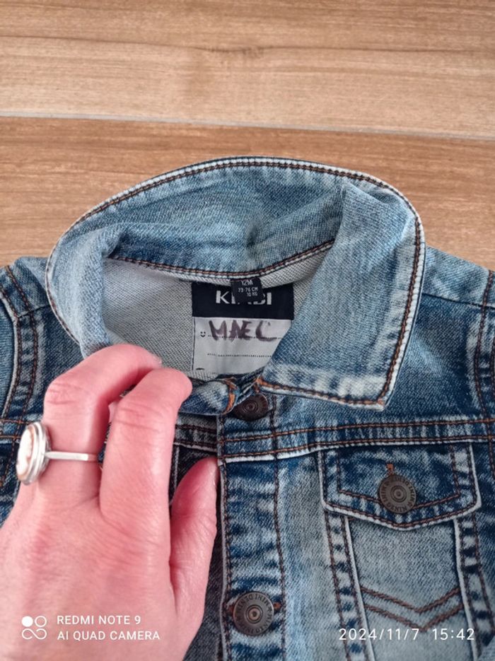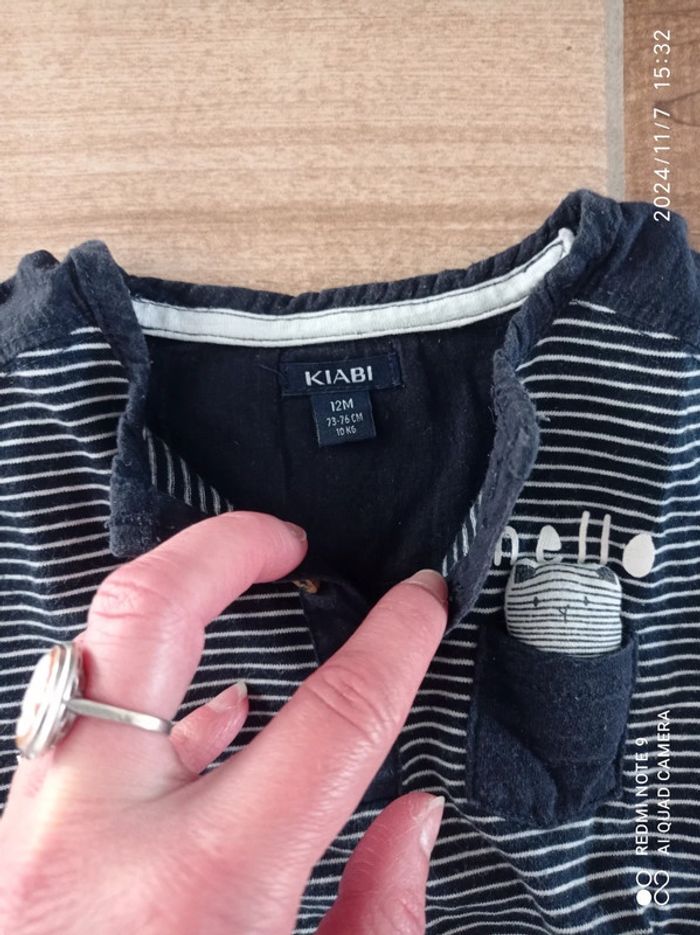 Ensemble 12 mois, jean slim+ tee shirt rayures marine+ veste jean+ écharpe ourson - photo numéro 11