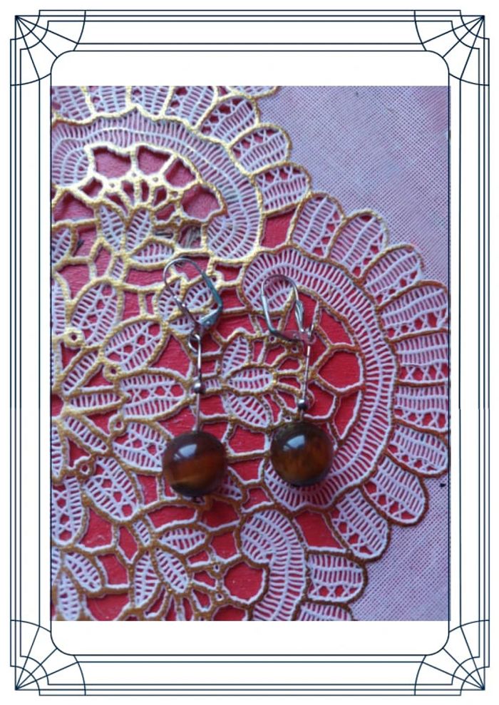 Boucles d'oreilles marrons œil de tigre - photo numéro 14