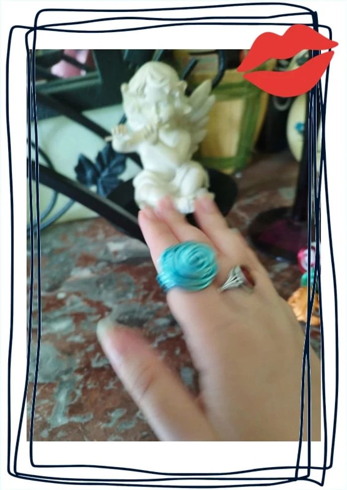 Bague tressée forme de rose couleur turquoise 15,3 mm très bon état #bague #bagues #femme #baguefemme #baguesfemme #bijou #bijoux #bijouxfemme #bijoufemme #faitmain #handmade #bijouxturquoise #bijouxbleu #baguebleu #baguebleue #bagueturquoise #bague15mm #bague153mm #baguetresse #baguetressee #bagueformerose #bagueformederose #bagueenformederose #vintage #stylevintage #retro #styleretro #bagueretro #baguevintage