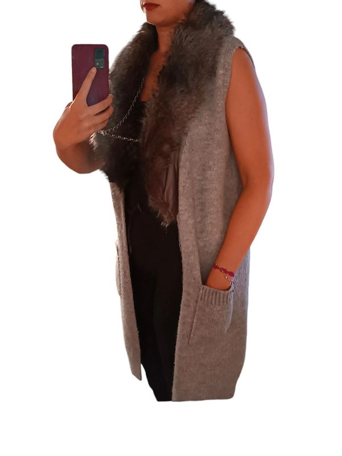 Maxi gilet gris bien chaud Sans manches et sans fermeture Taille M Col en fourrure En acrylique et polyester Poches à l'avant ✅ Expédition rapide et en petit format ❌ Je n'accepte pas les retours ⚠️ Prix fixe vu le prix déjà bas ⚠️ #clau_d1a_hiver #clau_d1a_pull
