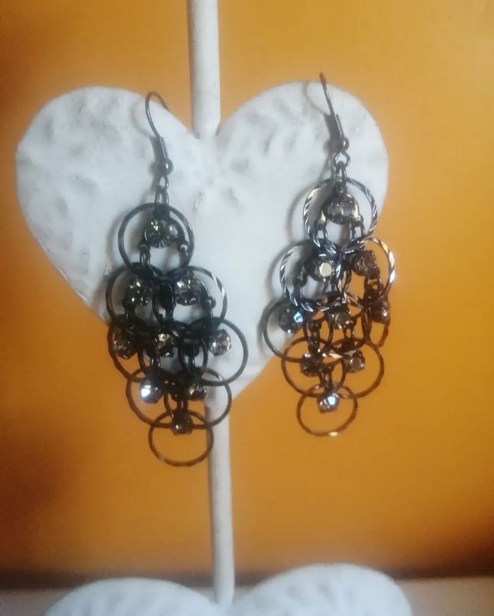 🌸Boucles d'oreilles cascade acier noir "komplott"🌸 - photo numéro 3