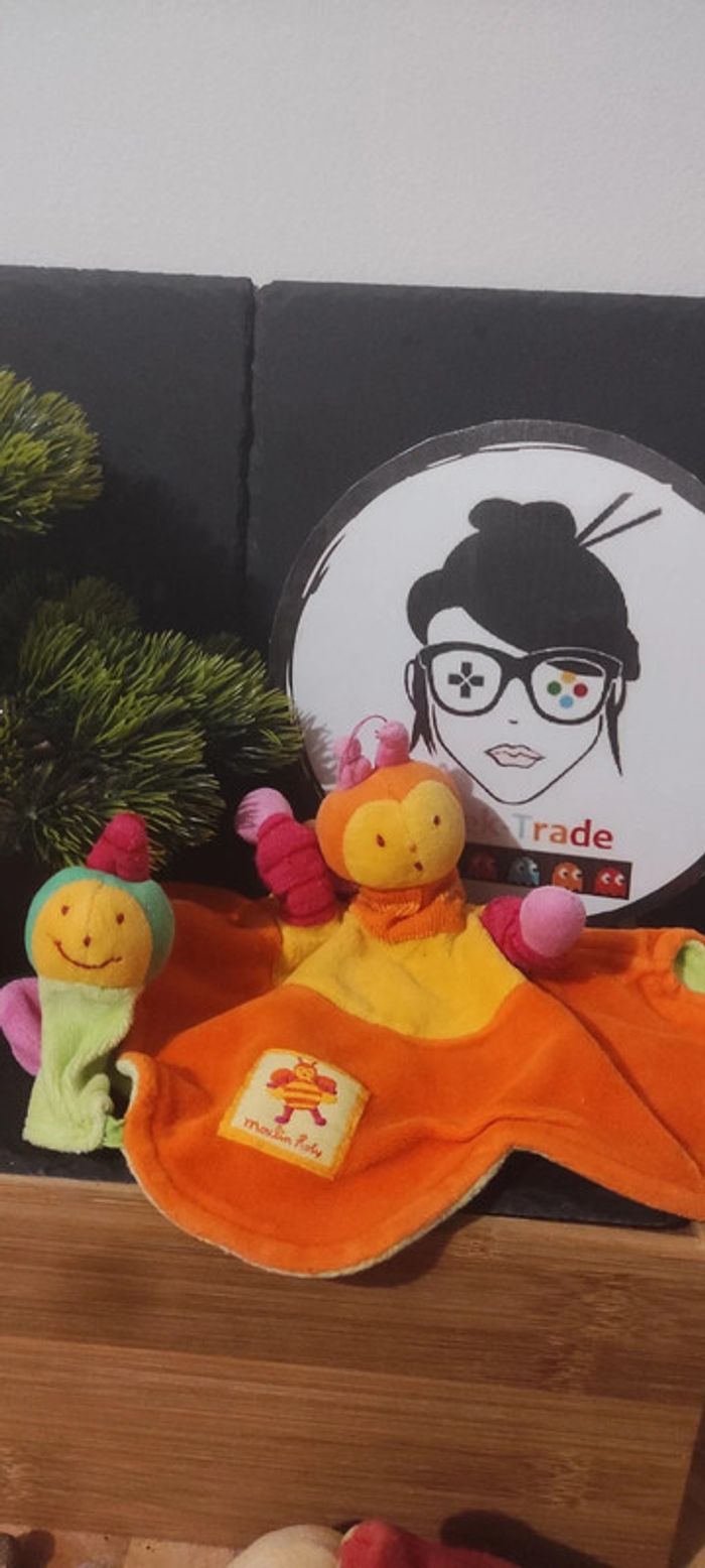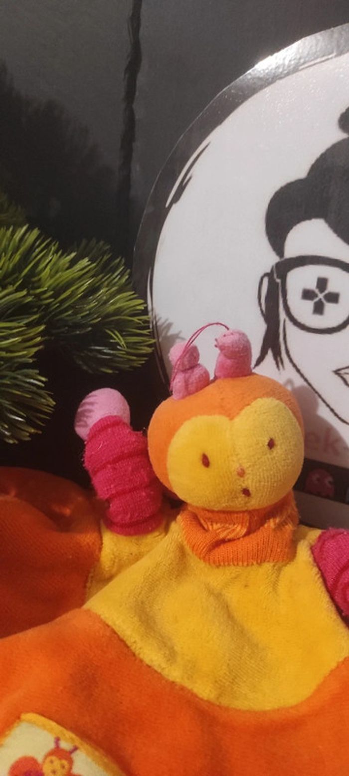 Doudou cache cache Louna abeille moulin roty doigt vert orange Marionnette Fleur - photo numéro 1