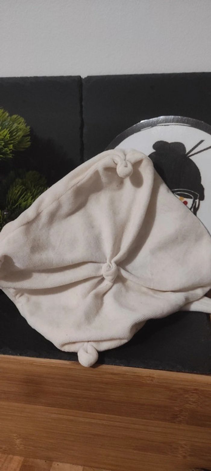 Doudou plat ours blanc vichy beige baby nat bonnet nuit ancien vintage carré carreaux - photo numéro 2