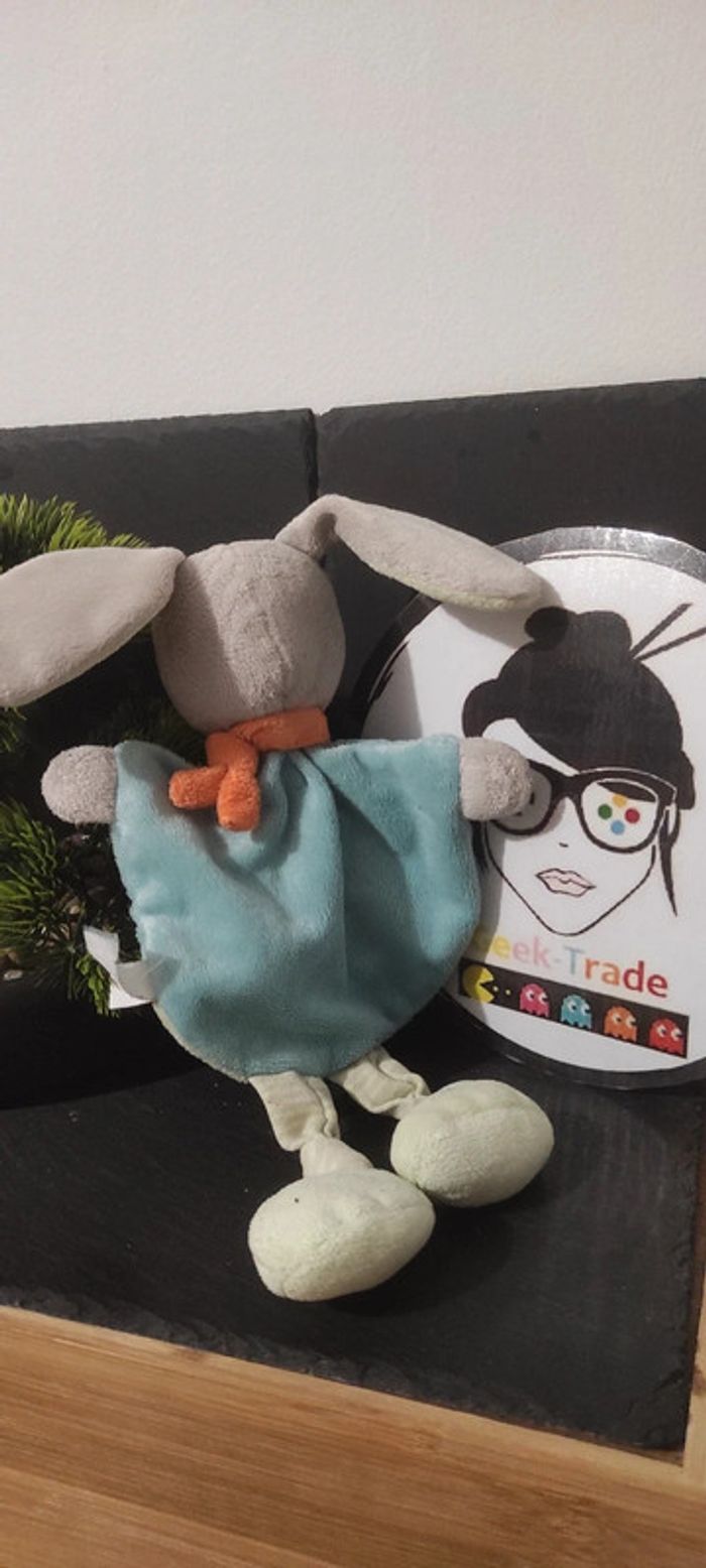 Tex baby doudou lapin vert orange arbre raton laveur Écharpe Bleu Feuille Rayé Rayure - photo numéro 2