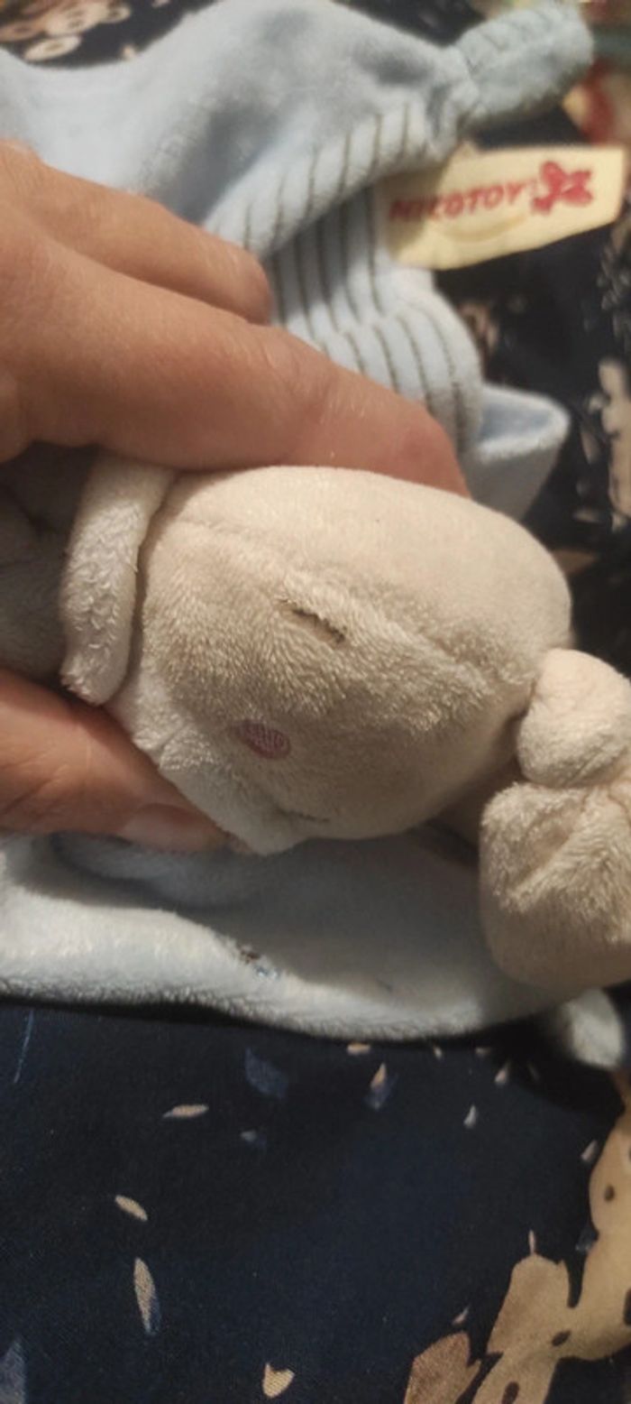 Référence : DD001012 remise en main propre : Vertou (44) #geektradenicotoy Stock : Bon etat Une tâche sur le côté de la tête . Je pense qu'elle peut partir au lavage mais je ne peux cependant pas le garantir Afin de ne pas abîmer les doudous et de laisser le choix dans l'utilisation de la lessive les peluches ne sont pas lavées avant envoi Description complément : Petit nettoyage à prévoir Vous achetez ce que vous voyez les photos font entièrement partie de la description Transport : Les frais de transport comprennent les frais du transporteur ainsi que l'emballage pour protéger au mieux votre achat. Chaque achat est envoyé en format colis avec numéro de suivi Le poids du colis est de 500g finit (je ne peux pas faire moins) il peut donc y avoir plusieurs objets dans le carton si vous le souhaitez (contactez moi afinde grouper les frais de port) Référencement : #geektradedoudou #peluche #plush  #doudou #enfant #bebe #knuffel #comforter #felpa #Plüsch