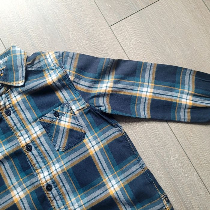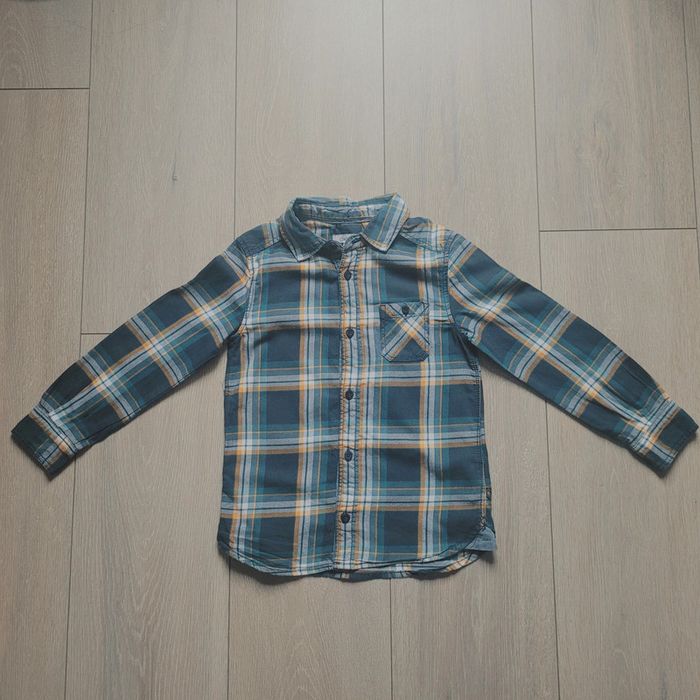 Vraiment beaucoup plus joli en vrai. Très belle chemise verte, bleu marine, crème, à rayure moutarde. Garçon 5 ans. Marque Okaidi En très bon état Il y a plein d autres articles dans cette taille dans mon dressing  🤗 #lunaclara60garcon5ans