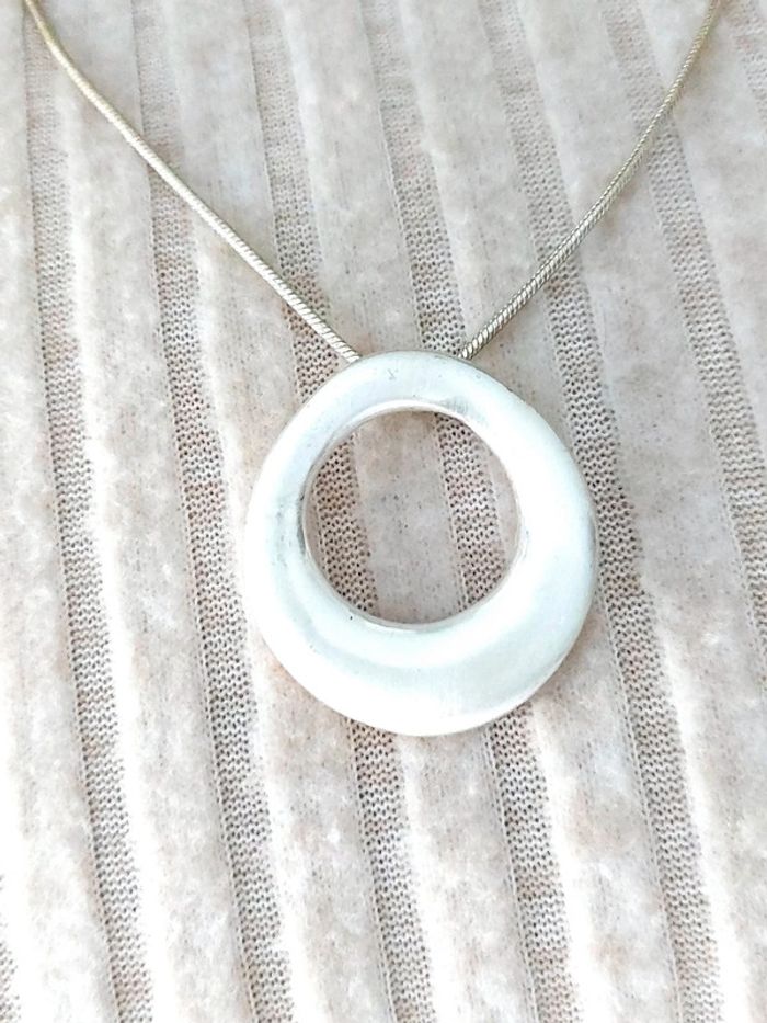 Magnifique collier minimaliste, chaîne maille serpent couleur argenté avec pendentif médaillon anneau. Très bon état. D'autres bijoux sont à découvrir dans mon dressing #bijouxsupernova 💙 Nous offrons 10% de réduction pour nos abonnés Instagram @caelifer_ ⚜️ Je suis disponible pour d'autres renseignements / ou demandes de lot. 💙 Les envois se font soit le jour même ou en 72h maxi ! Tags Vintage chic hippie 60's 70's 80's 90's 00's Y2k foulard soie collier bijoux fantaisie signature boucles d'oreilles bague bracelet manchette jonc parure pendentif médaille religieux ancien brocante antiguo antico juwelen bigiotteria joyería antigua antique antik vieux victorien belle époque 1920 art déco art nouveau 1930 années 50 lot gros lot lotto set carré friperie poinçon pièce rare argenté doré bronze perles strass