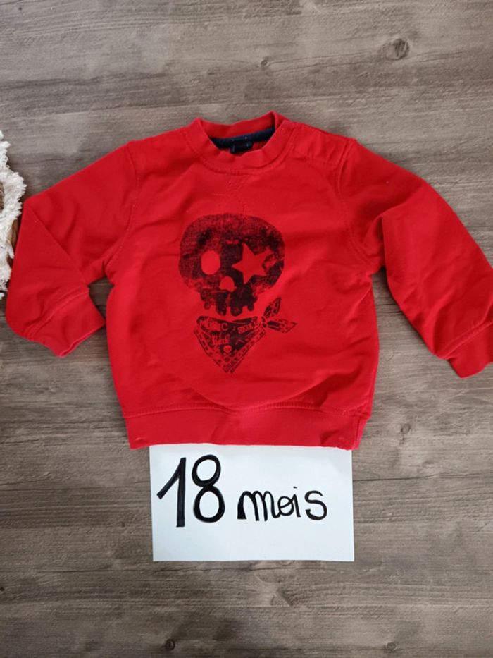 Pull rouge Tres bon etat peu porté Taille 24 mais plutôt 18 mois Marque kiabi